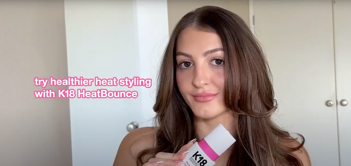 - Apply K18 oil on dry hair as a finisher + protect from heat styling