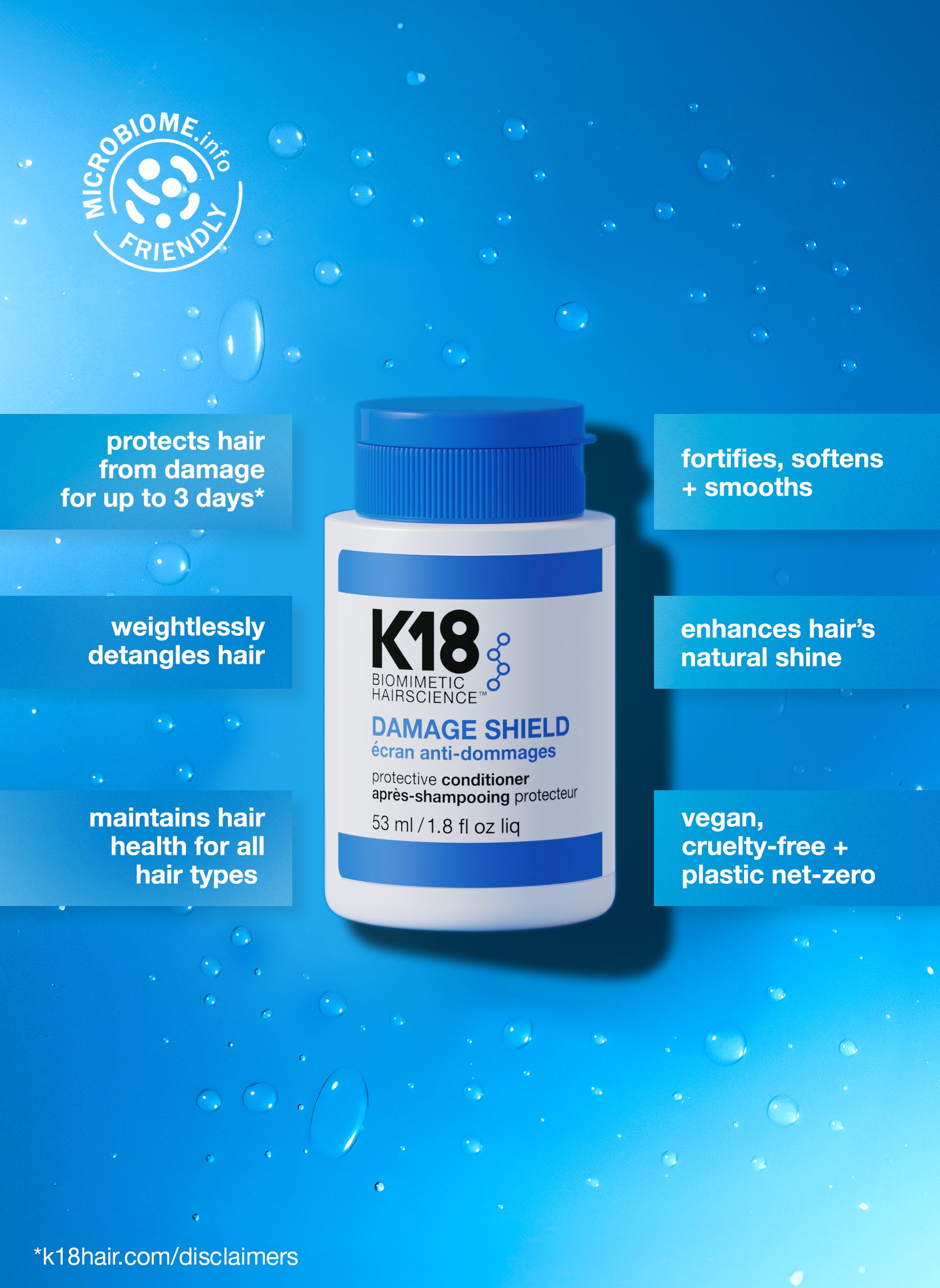 A nourishing. protective conditioner that helps shield hair from daily damage to help maintain hair health and improve smoothness and shine. Engineered to weightlessly soften and detangle while the K18PEPTIDE™ helps replenish hair during washing.