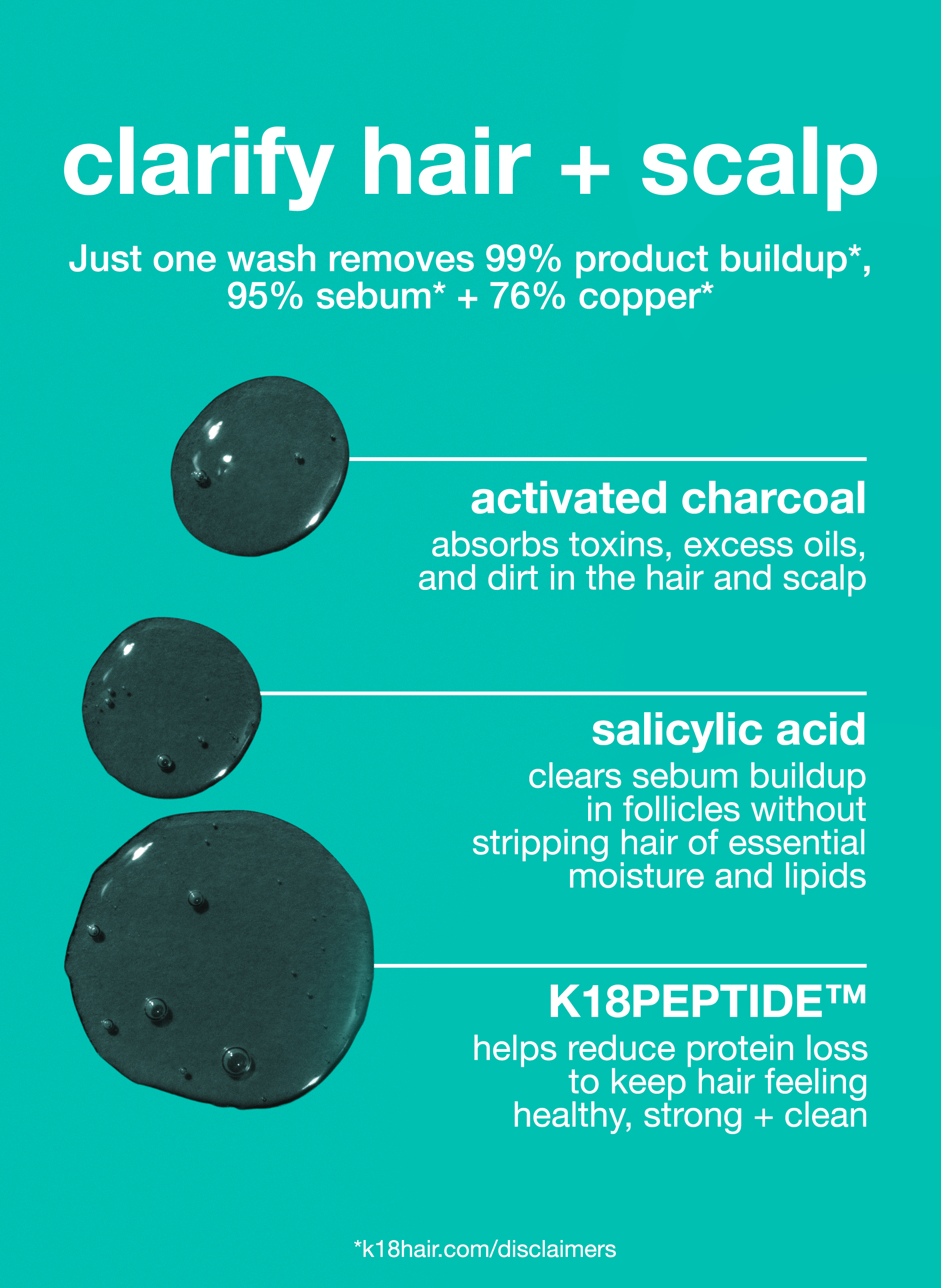 A color-safe. non-stripping clarifying shampoo with the to gently but effectively remove 99% product buildup*. 95% sebum* + 76% copper* for detoxified. refreshed hair.