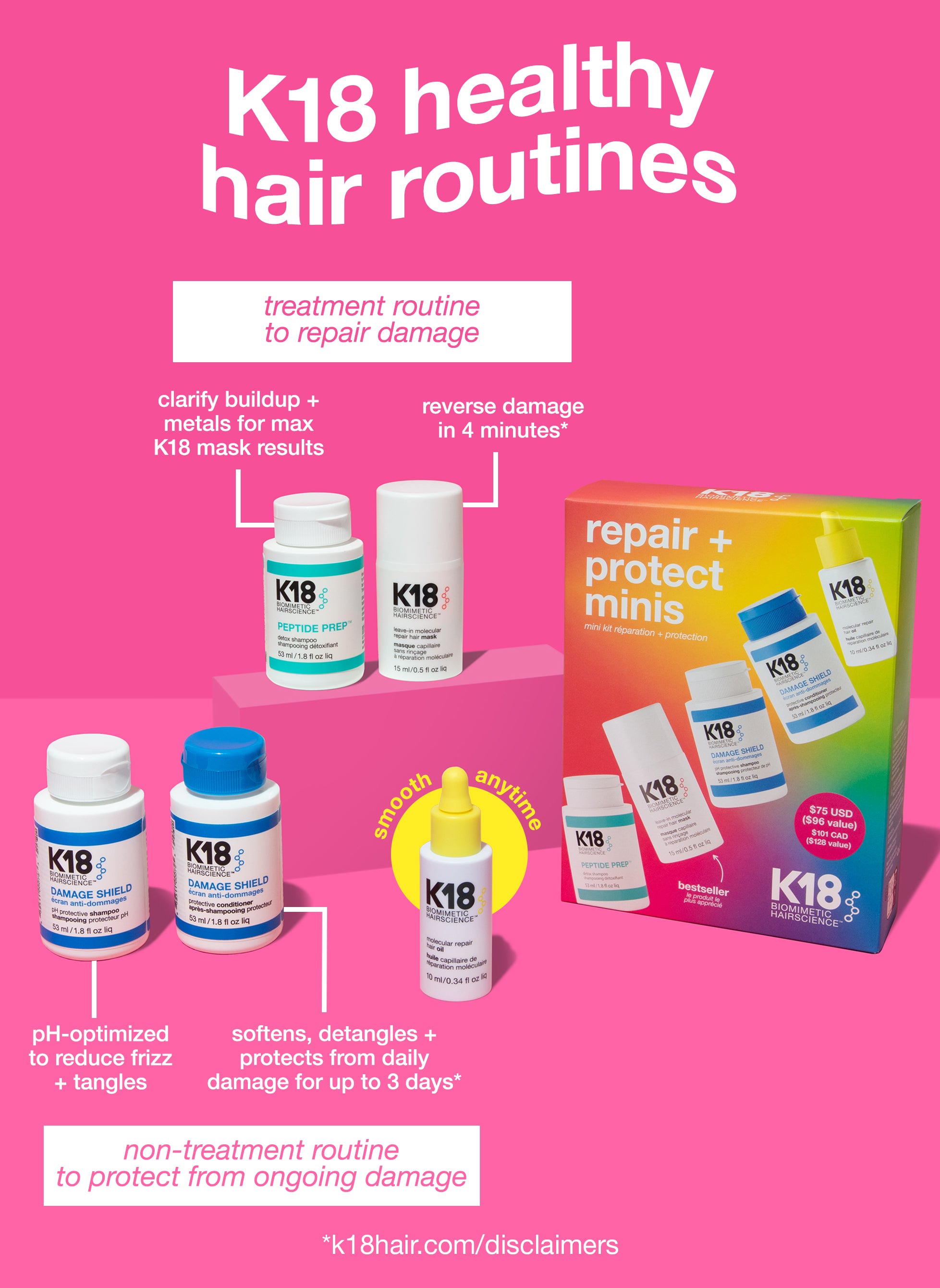 Mini biotech-powered set featuring 2 routines for all hair types to repair + protect against damage.